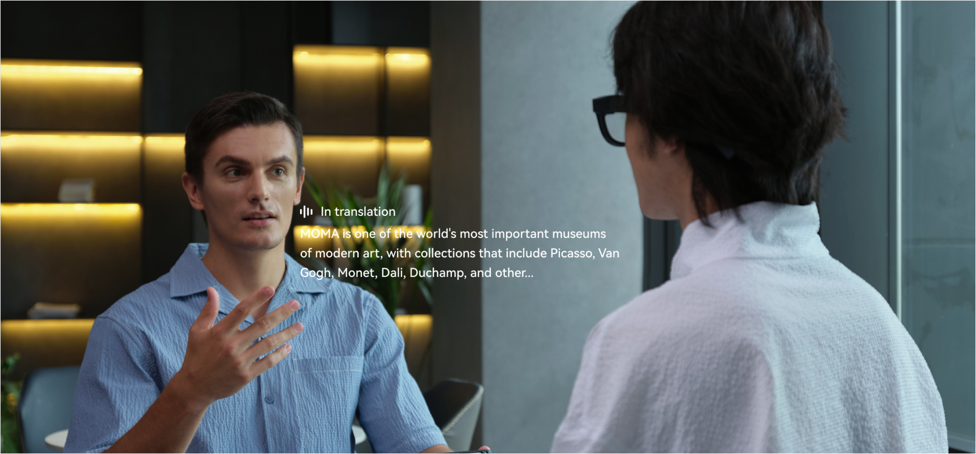 • Face Tracking Dialogue Translation, powered by Microsoft Azure, enables seamless multi-language communication, maintaining natural eye contact