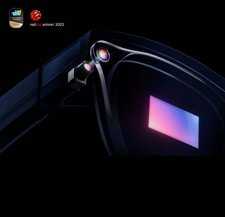 Capture instant first-person view videos and photos in 16MP high-definition resolution with anti-shake filming capability, Swiftly slide the temple when the screen is off to seize these memorableshots for a hands-free visual experience. it's a refined extension from mobile phones to AR glasses