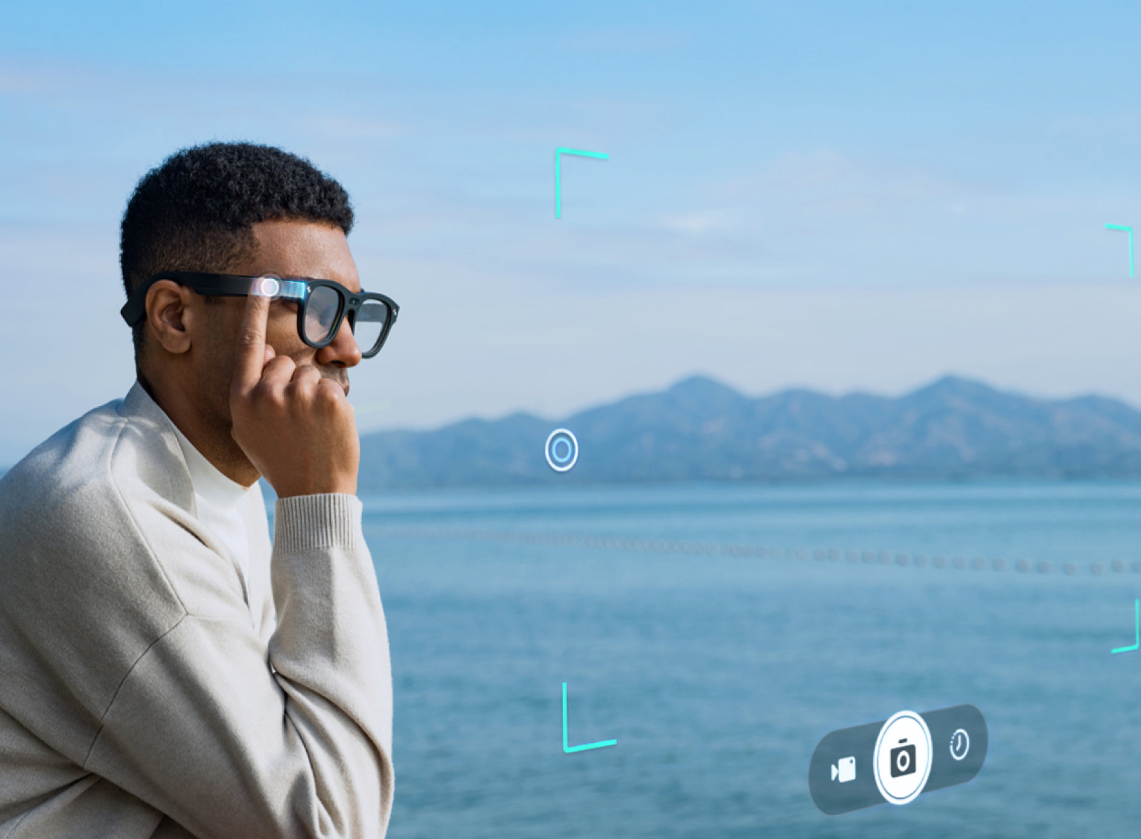Touch control zones on both temples for quick and efficient command execution. Media control on the left temple, system control on the right.
