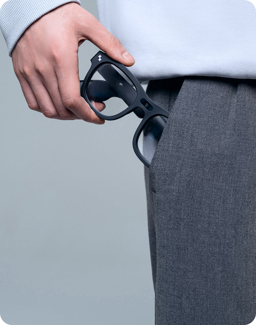 Simply lift your gaze wherever you are instantly viewing your glasses' status and receiving important notifications like weather, date, bluetooth status, and battery level